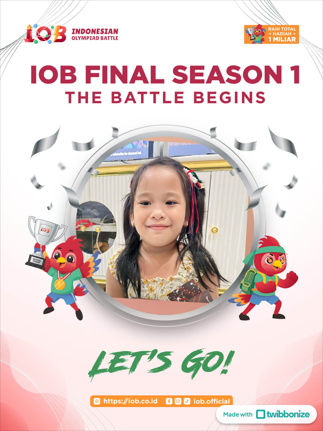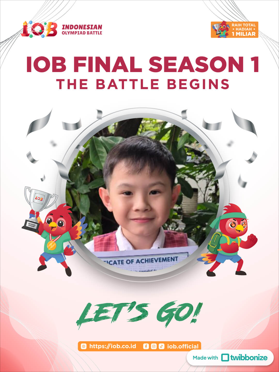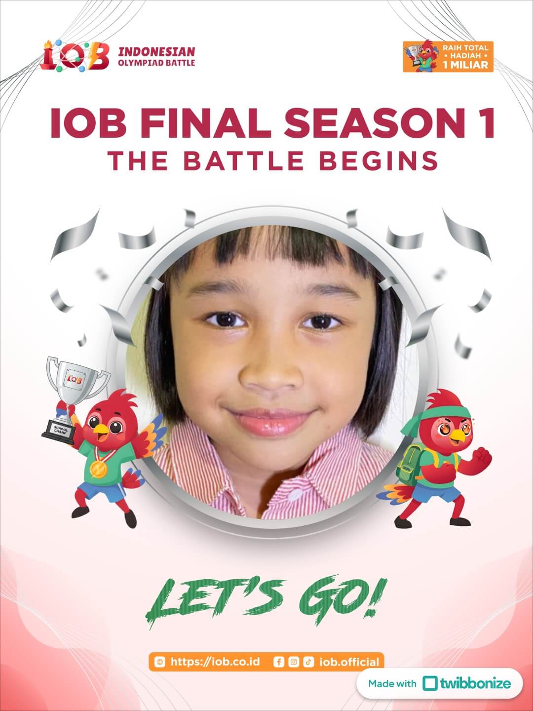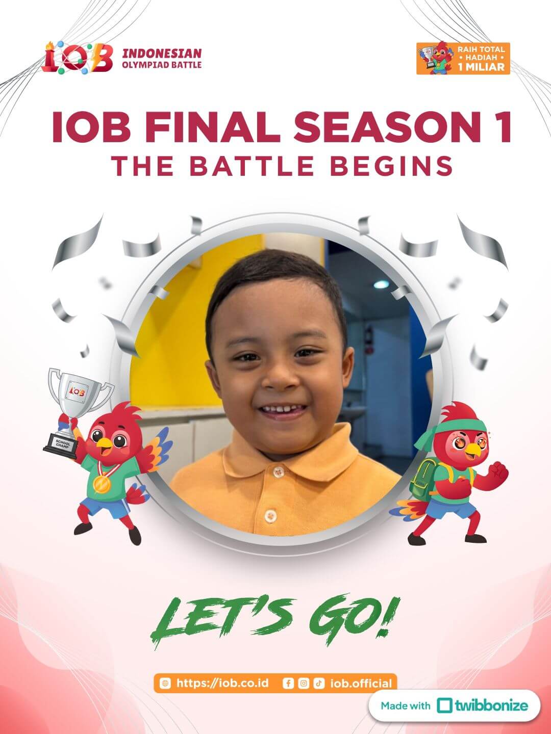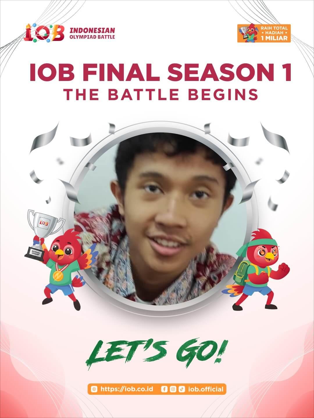 Indonesian Olympiad Battle (IOB) adalah platform kompetisi online yang didedikasikan untuk siswa dari tingkat TK hingga kelas 12 dalam bidang studi Matematika, Bahasa Inggris, dan Sains.